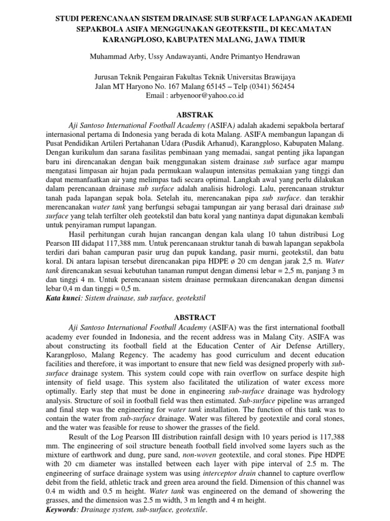 struktur tanah pada lapangan sepak bola Yogyakarta: Gadjah Mada University