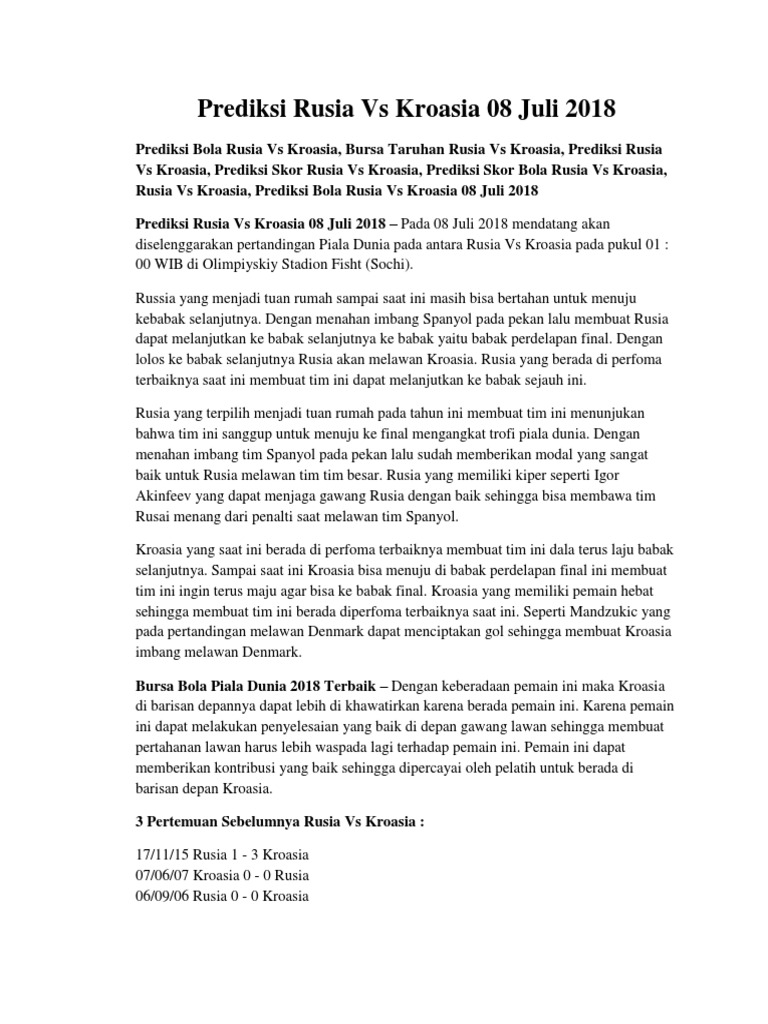 Vs Kroasia, Prediksi Skor Rusia Vs Kroasia, Prediksi Skor Bola Rusia Vs Kroasia,